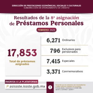 1 min read Salud Asigna ISSSTE más de 17 mil préstamos personales en octava asignación del año febrero 24, 2026 Redacción