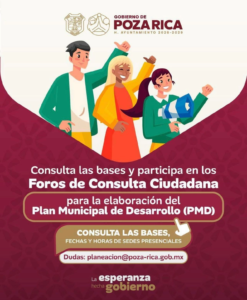 1 min read Información Municipal Poza Rica Gobierno de Poza Rica emite convocatoria para participar en los Foros de Consulta rumbo a la elaboración del PMD 2026–2029 febrero 17, 2026 Redacción