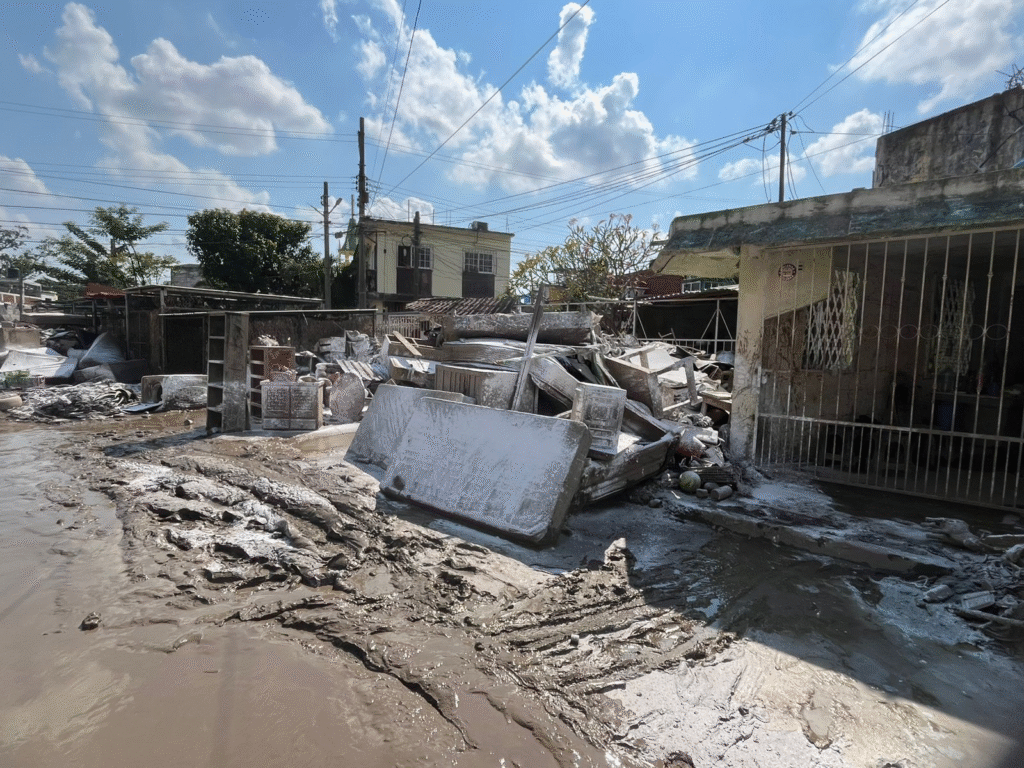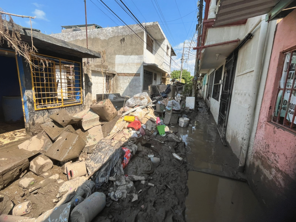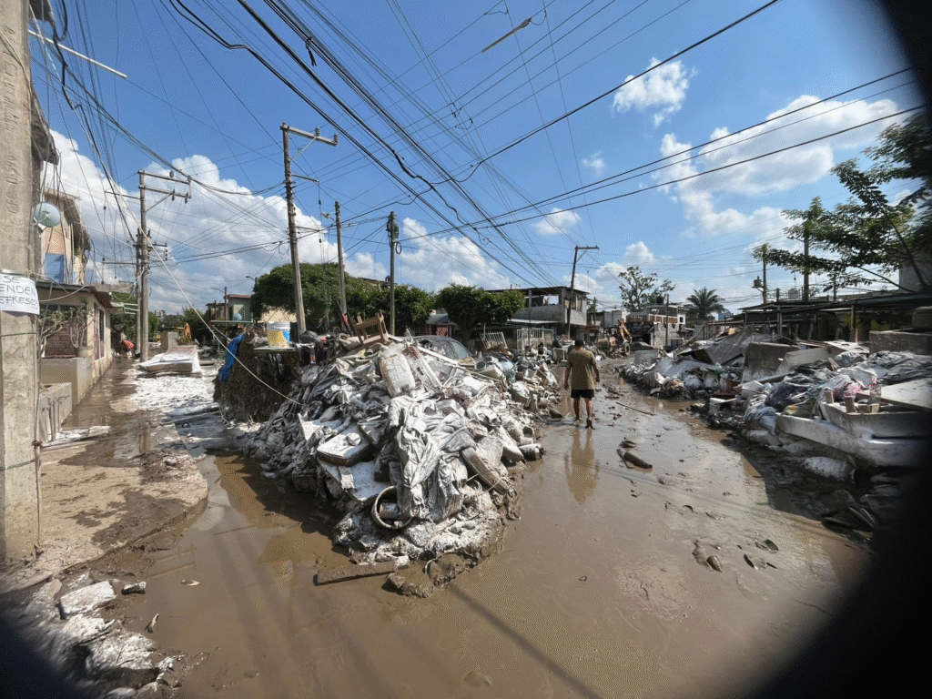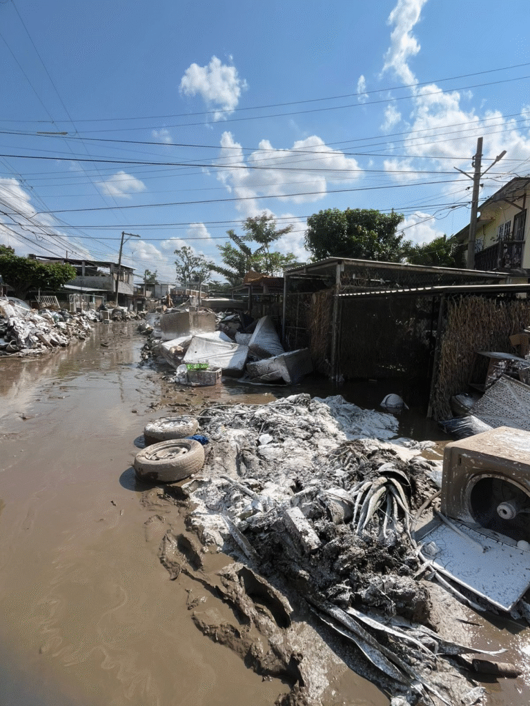 Poza Rica, Veracruz. Sábado 18 de Octubre, 2025.- Colonia Gaviotas 1, a nueve días del desbordamiento del río Cazones.