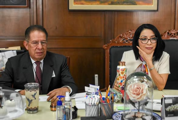 “Con el respeto institucional y la responsabilidad de construir acuerdos que se traduzcan en bienestar para nuestra gente, me fue muy grato acudir a una reunión con la Consejera Jurídica del Ejecutivo Federal, Esthela Damián, a quien reconozco y agradezco su apoyo y colaboración, en compañía del Subsecretario de Ingresos Aniel Alberto Altamirano y del Coordinador de Asesores José Antonio Bretón de SEFIPLAN.