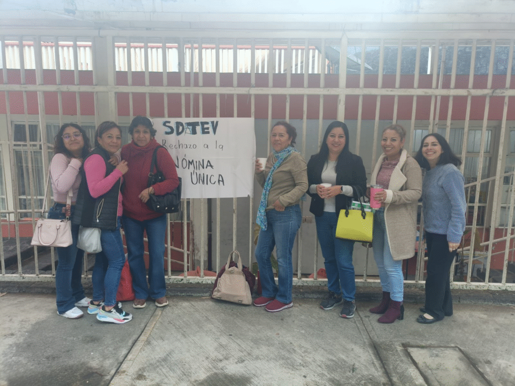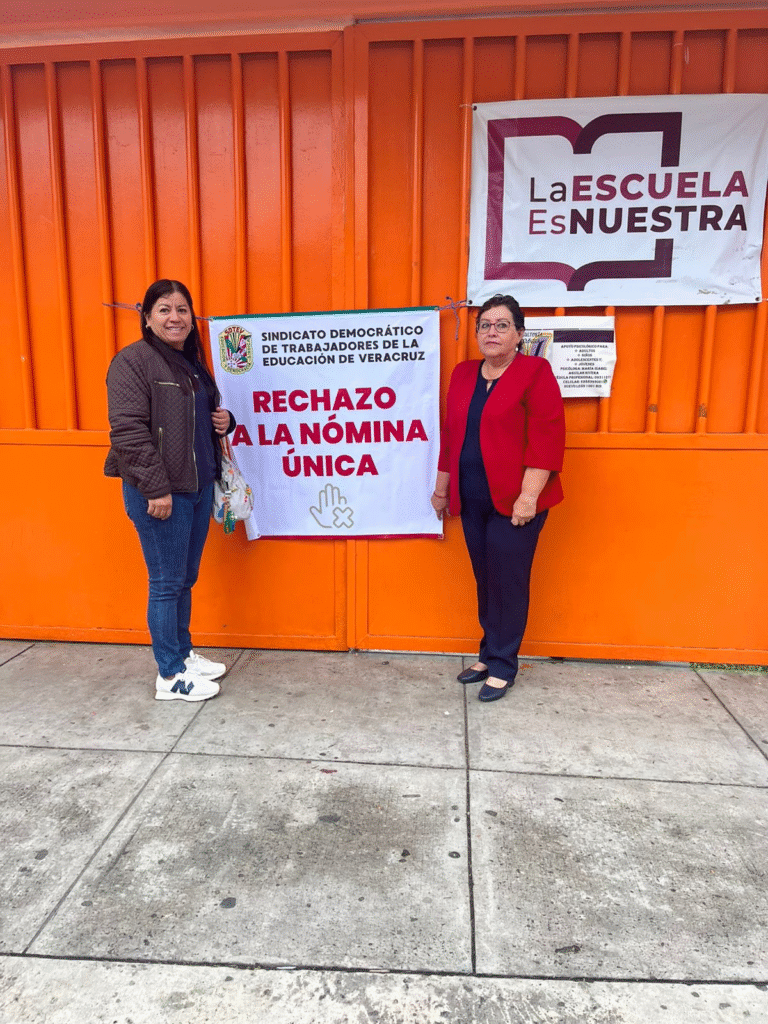 Irineo Pérez Melo.- Agremiados del Sindicato Democrático de Trabajadores de la Educación de Veracruz (SDTEV) tomaron diferentes escuelas de los niveles de Preescolar, Primaria, Secundaria y Bachillerato desde el norte, centro y sur del Estado de Veracruz, en protesta por la implementación de la nómina única por parte del gobierno estatal, a través de la Secretaría de Educación de Veracruz (SEV).