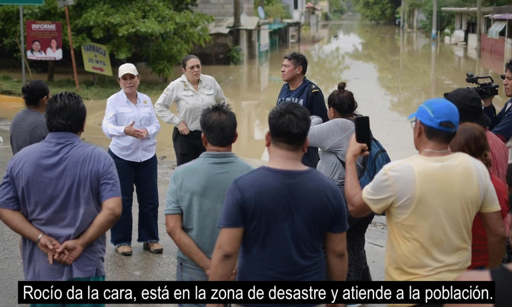 Ese domingo, Rocío aguantó vara, primero cuando damnificados la vieron a bordo de una camioneta del Ejército, sentada en la parte trasera, y le empezaron a hacer reclamos a gritos, luego cuando escuchó las quejas ante Sheinbaum lo mismo contra ella que contra su gobierno. En pocas palabras, por lo menos ha dado la cara y no se ha escondido ni se la ha pasado en la comodidad del palacio de gobierno o de su mansión en El Dorado, en Boca del Río.