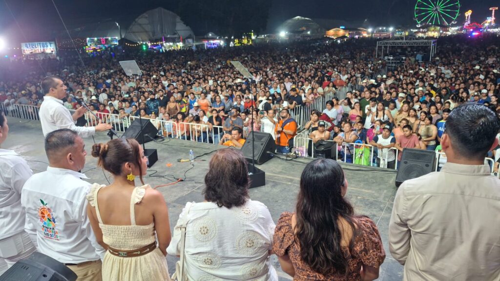ÁLAMO, VER.- En un ambiente festivo, lleno del entusiasmo de miles de asistentes, el presidente municipal José Roberto Arenas Martínez inauguró anoche la Feria de la Naranja 2026, y llamó a todo los alamenses a disfrutar, celebrar y sonreír porque Álamo está unido y de pie.