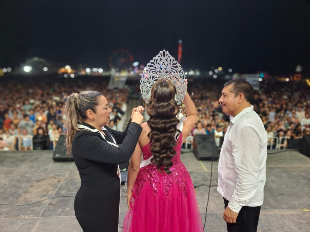 Más tarde, ya en el escenario del Teatro del Pueblo, Pepe Arenas y su esposa Norma Edith coronaron a la nueva soberana de la Feria de la Naranja 2026, Sofía Aranza Cardenete Hernández.