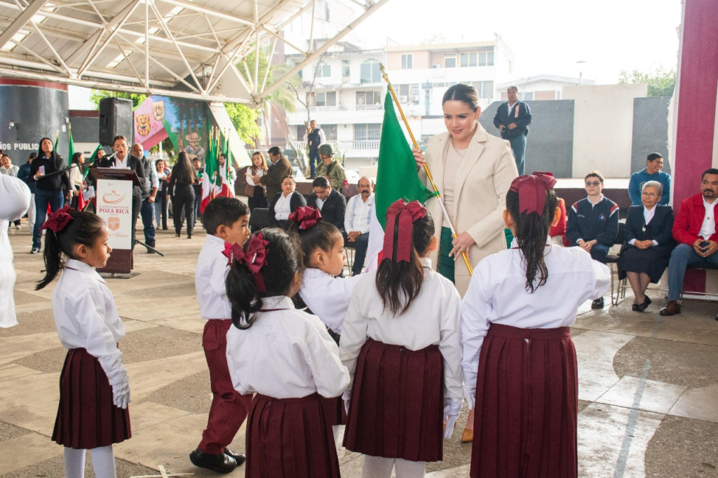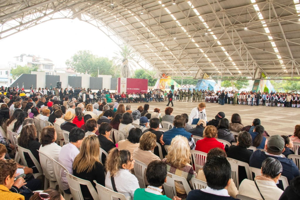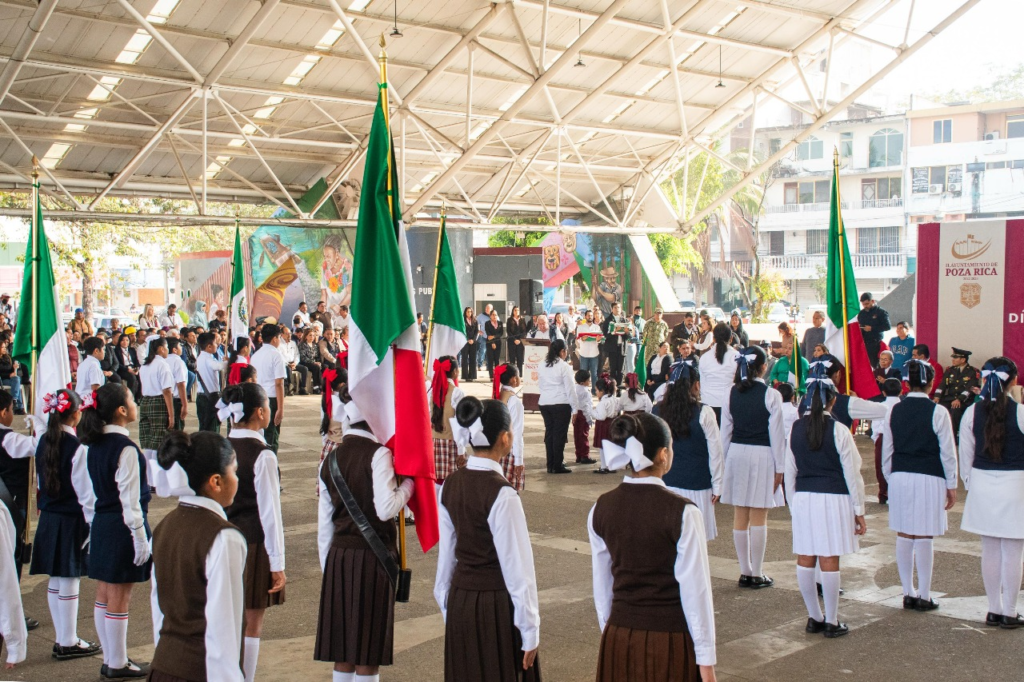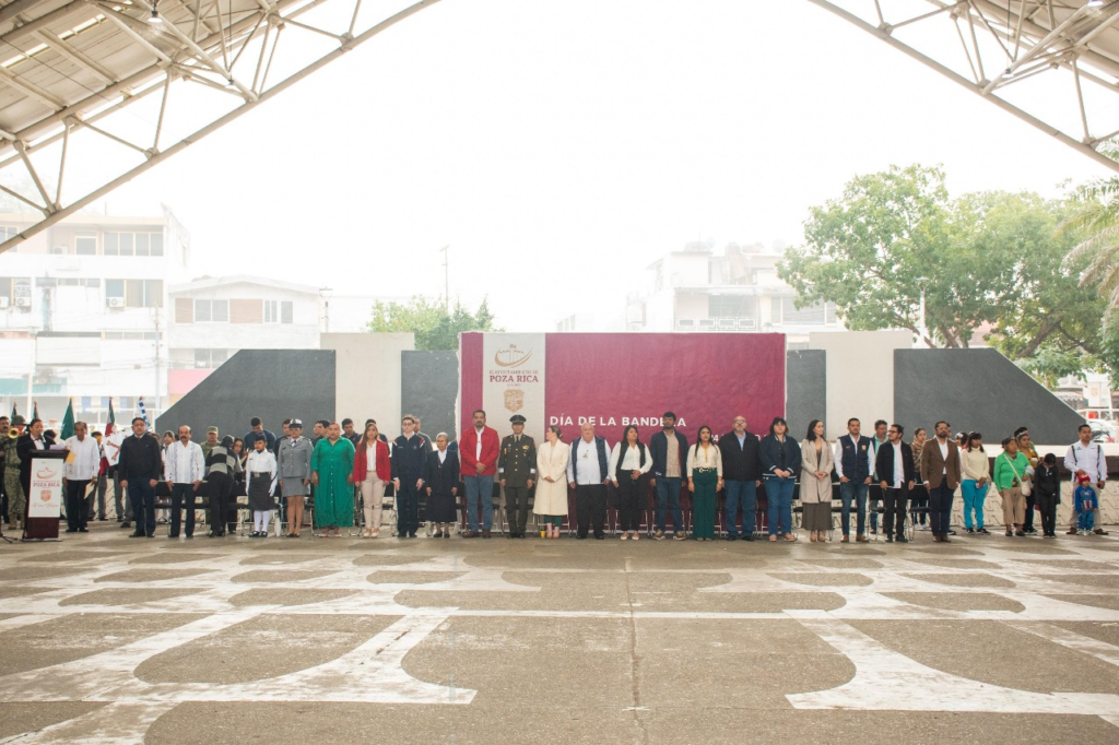 Poza Rica, Ver. – Desde la emblemática Plaza Cívica 18 de Marzo, el Presidente Municipal, Fernando Remes Garza, acompañado de autoridades municipales y militares, así como docentes, estudiantes y el pueblo pozarricense, conmemoró el Día de la Bandera, honrando a este símbolo patrio que representa el espíritu de unidad, valor y patriotismo.