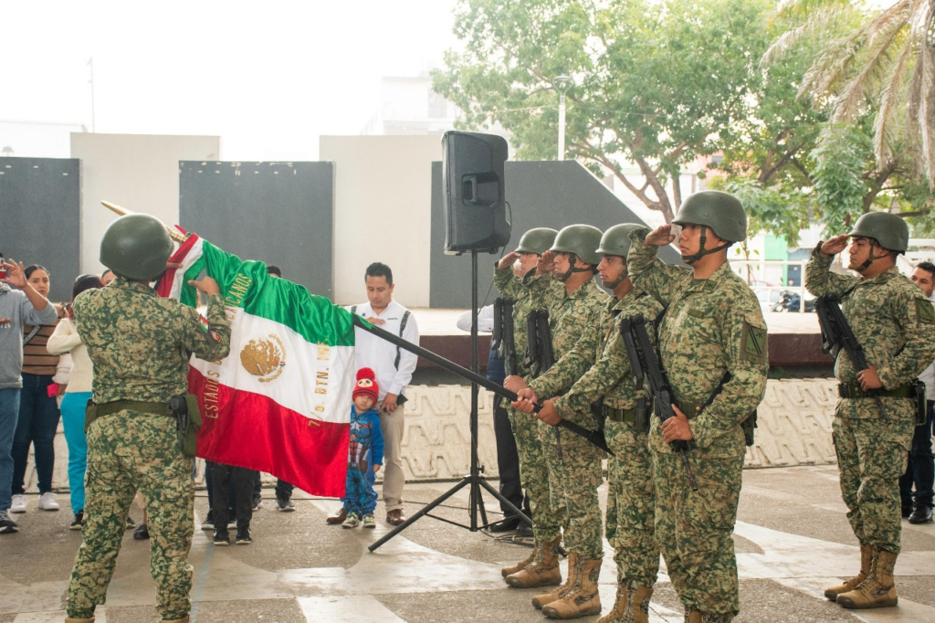 El homenaje dio inicio desde temprana hora con el izamiento de la bandera mexicana a toda asta, siguiendo con el protocolo de la ceremonia marcial, donde se incinera una bandera desgastada de manera respetuosa y se da la bienvenida a la nueva.