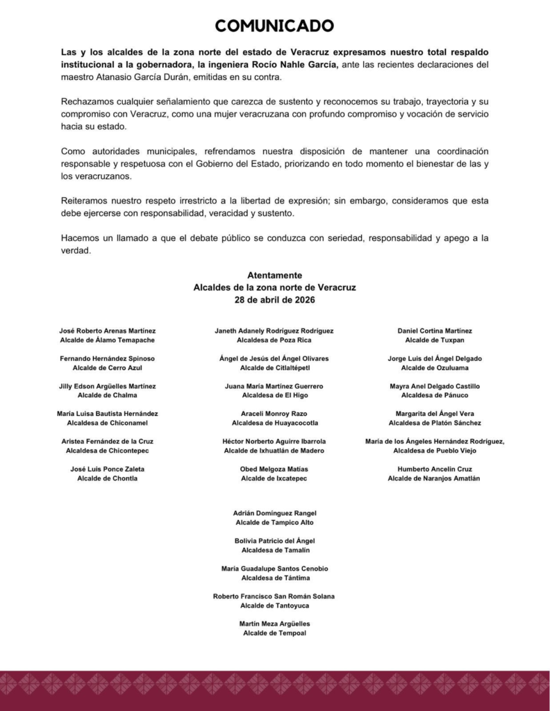 Alcaldes de la Zona Norte expresan su respaldo institucional a la gobernadora Rocío Nahle