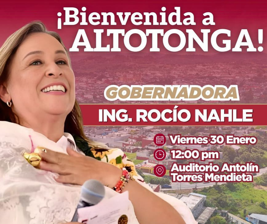 Altotonga, Ver.- El municipio de Altotonga se honra en recibir este viernes a la gobernadora de Veracruz, Rocío Nahle García, en una visita que representa un paso importante para continuar impulsando el bienestar y la transformación del estado.