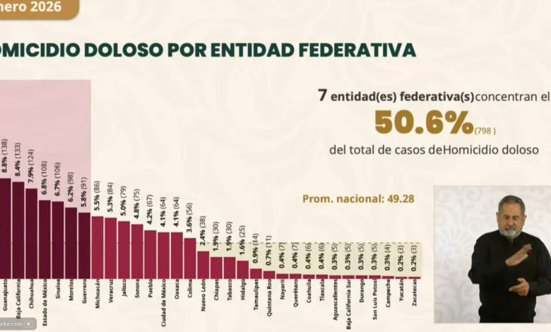 • Enero 2026, homicidios dolosos se incrementan 40 % respecto a enero del 2025