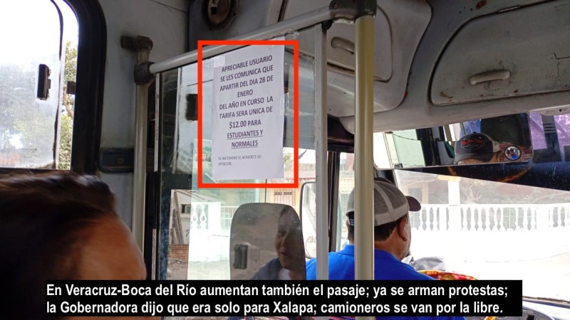 (No se podía esperar otra cosa. Al autorizar el Gobierno de Morena –la gobernadora dijo que fue ella, pero solo para Xalapa– un aumento de 30.33% al costo del pasaje del transporte urbano en la capital del estado, el resto de concesionarios de toda la entidad empezó a exigir trato igual, piso parejo. Peor, en Xalapa también las “peseras”-“combis”-“colectivos”, que cobraban 7 pesos, de golpe y porrazo, sin control de nadie, aumentaron en 5 pesos el pasaje, un aumento de 71.43%, lo que necesariamente golpea el bolsillo de la población que hace uso de ese servicio, que es la más necesitada económicamente. Ha sido otra puñalada trapera a los xalapeños. Y ahora, en la zona conurbada Veracruz-Boca del Río los camioneros ya avisaron que a partir de este miércoles también empezarán a cobrar 12 pesos, mientras que en Coatepec el propio alcalde Jorge Ignacio Luna Hernández informó que el transporte urbano y suburbano (pueblos circunvecinos y Xalapa) también aumentó en 5 pesos. Los usuarios están solos, indefensos y desprotegidos. Ahora ni siquiera el “senador del pueblo”, Manuel Huerta, ha salido a protestar y ponerse de su lado. Este martes, cuando el presidente de la Jucopo, diputado Esteban Bautista Hernández, pidió a los nuevos alcaldes no “cargarle la mano a la ciudadanía” con el cobro de impuestos, creo, casi estoy seguro, porque siempre defiende las causas populares, porque no ha perdido la esencia de su origen, que también quiso decir que no le carguen la mano a los usuarios del transporte público. Se entiende que no podía decir que era un mensaje también para Rocío, pero se entiende la intención, o al menos yo así lo quiero entender. A ver quién para ahora el desmadre que ya se está armando. Ya están convocando a protestas para el sábado.)