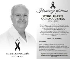 2 min read De todo un poco En Huatusco le rinden un merecido homenaje póstumo al Mtro. Rafael Ochoa Guzmán EPD diciembre 4, 2025 Redacción