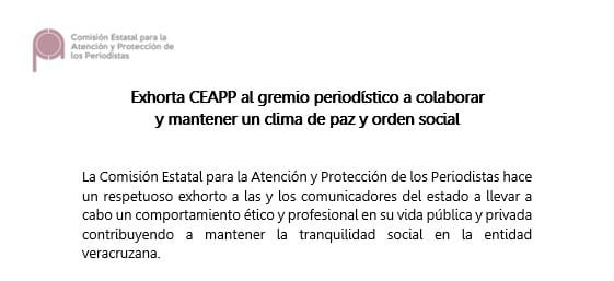 La carta que el sábado pasado dirigió la Comisión Estatal de Atención y Protección a los Periodistas (CEAPP) al gremio periodístico de Veracruz, consolidó en el discurso público la concepción del organismo creado durante el gobierno del Javier Duarte de Ochoa, aún preso, en un contexto de violencia mortal contra el gremio impulsada desde las entrañas de la propia administración duartista.