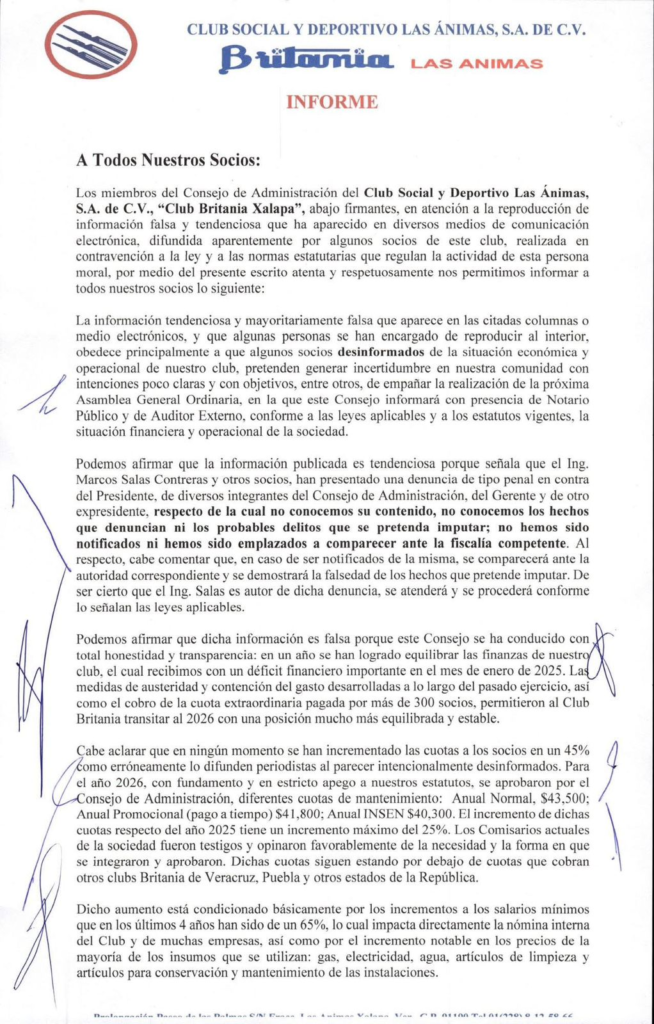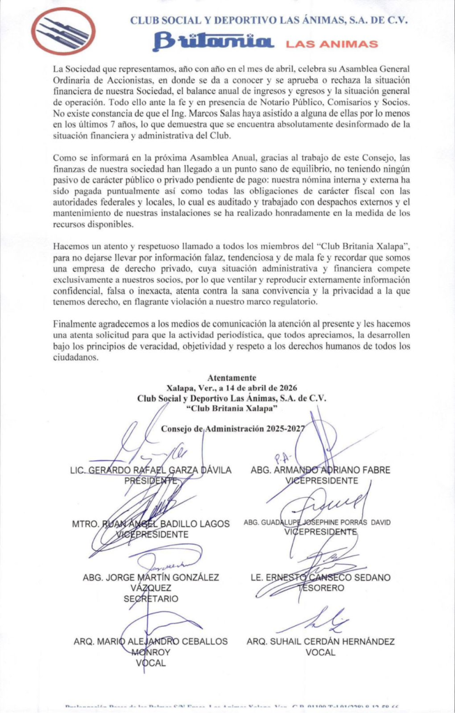 Ya entrada la noche de este miércoles 15 de abril, nos hacen llegar al Buzón de Quejas, una carta por medio de la cual, los directivos del Club Britania, manifiestan que desconocen la existencia de una demanda penal en contra de su presidente y desmienten los hechos que se han difundido en distintos medios informativos, entre ellos, este portal, por lo que, como corresponde a derecho de réplica, la publicamos, sin que este hecho signifique que cuestionemos lo que en este medio han publicado varios columnistas y reporteros, quienes siempre, como profesionales que son, han sabido conducirse con respeto y en total apego a las leyes, en el ejercicio de su libertad de expresión, la cual En Esta Hora, es plena.