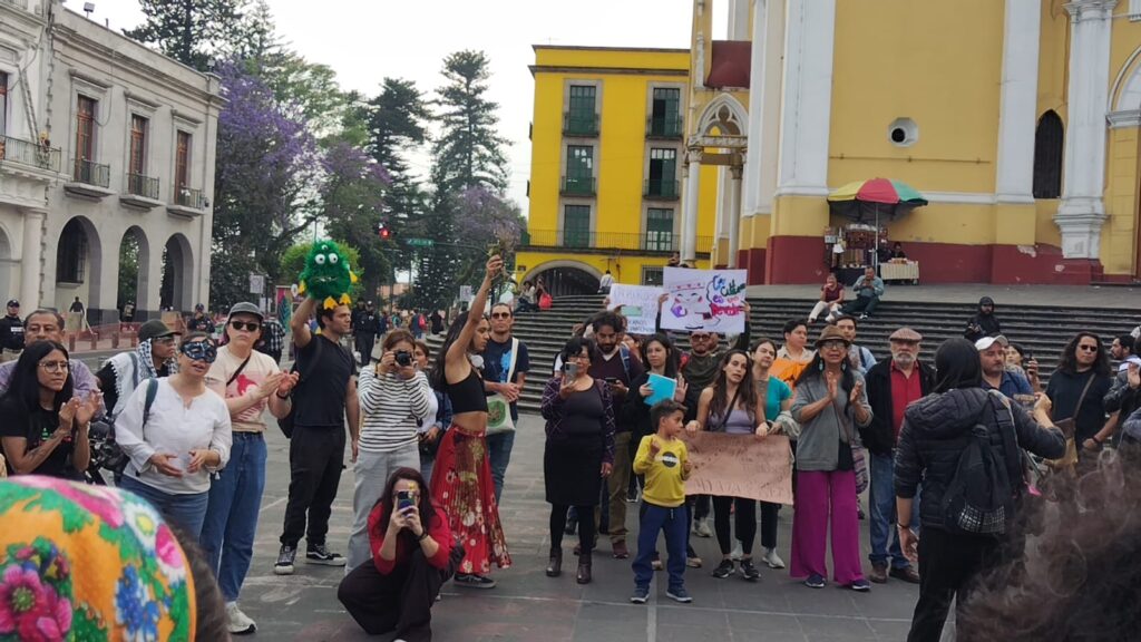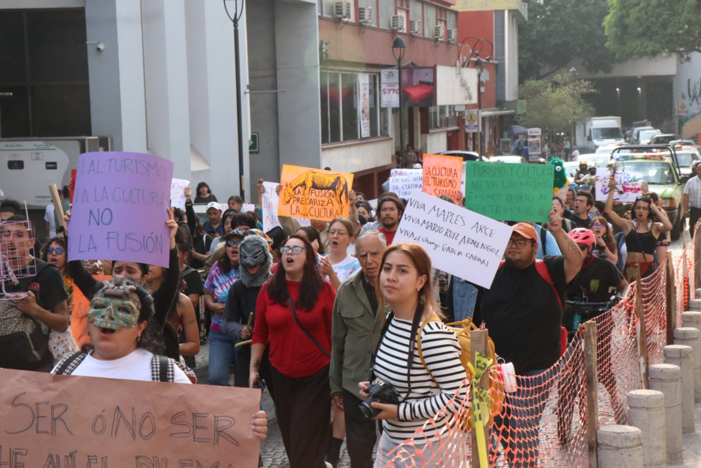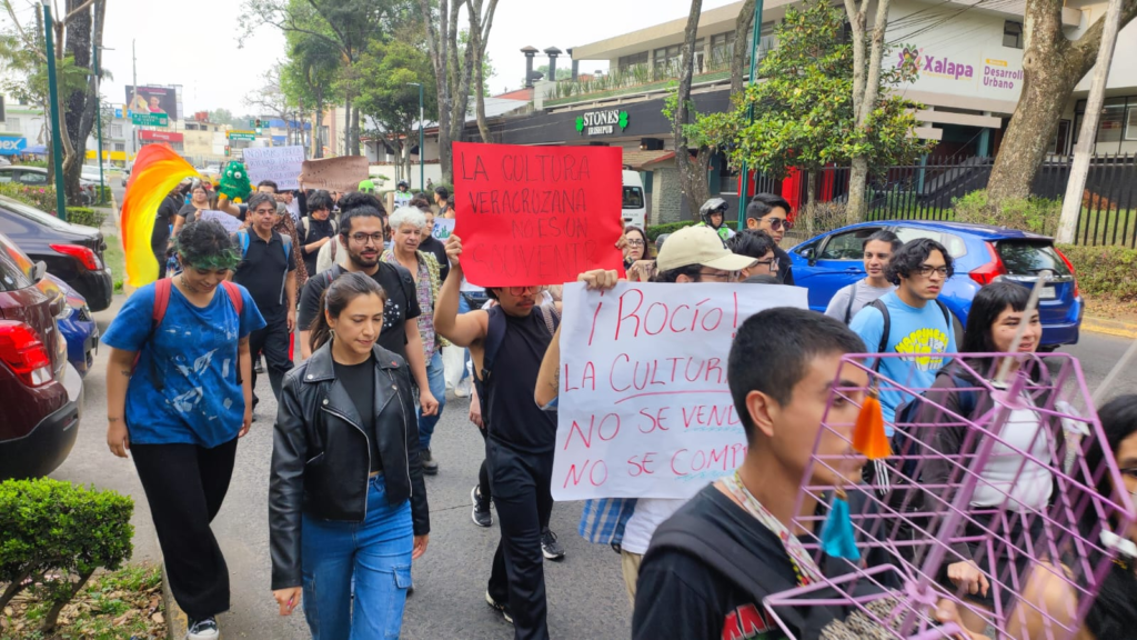 Ya en la Plaza Sebastián Lerdo se manifestaron a favor de la cultura y rechazaron la exotización de su trabajo, señalando que la fusión (de las secretarias de Turismo y de Cultura) precariza la cultura, la cultura es un derecho, la cultura veracruzana es historia, tradición, es herencia no un souvenir.