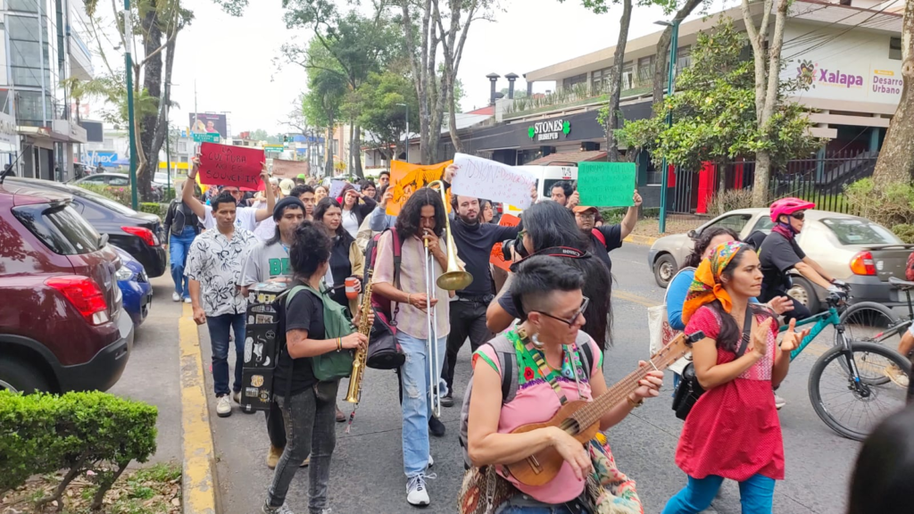 Los manifestantes partieron de las inmediaciones del Teatro del Estado General Ignacio de la Llave para concluir en la Plaza Sebastián Lerdo de Tejada y durante su trayecto parodiaban la popular Bamba: “porque no son lo mismo, por separado, hay arriba y arriba, hay arriba y arriba…”, con cartulinas en donde se leían las consignas: “la cultura veracruzana no es un souvenir”, “La cultura no es una moda ni Veracruz es Zacatecas”, “Que el gobierno deje de pararse el cuello con ‘Xalapa la Atenas Veracruzana’ cuando no sostiene a sus artistas”, “Yo no soy tu dinero”, que le adaptaron al considerado himno veracruzano, las comunidades artísticas recorrieron las Avenidas Ávila Camacho, Zaragoza, Primo Verdad y Enríquez, y concluir con un mitin frente a palacio de gobierno y patentizar su repudio por la medida gubernamental.