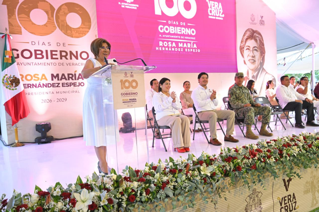 En asamblea pública previa a la Jornada del Jueves en tu Colonia, la presidenta municipal de Veracruz, Rosa María Hernández Espejo, presentó el balance de los primeros 100 días de gobierno, con resultados reales y tangibles logrados en el inicio de la transformación de la Cuatro Veces Heroica Ciudad de Veracruz.