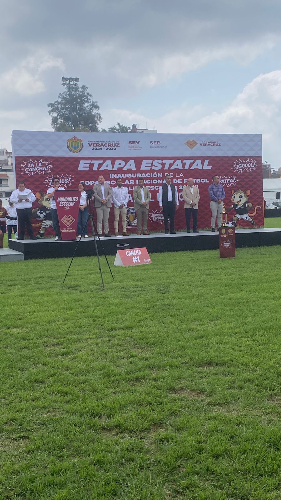 Xalapa, Equez.. Ver., abril 17 del 2026.- Este jueves se llevó a cabo la presentación inauguración la Copa Escolar Nacional de Fútbol “Mundialito Escolar”, que realizará los días 15 16 y 17 de abril de presente año, la cancha del Estadio “Antonio M. Quirasco”, coordinado por la Dirección de Educación Física estatal, de la secretaría de educación de Veracruz (SEV).