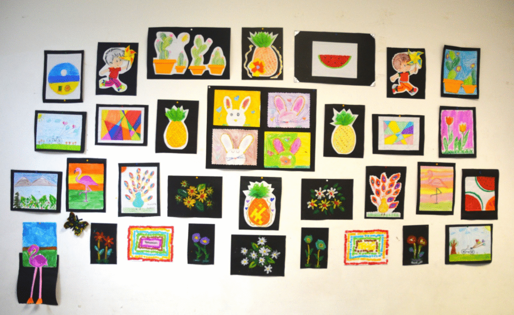 Uno de los momentos más emotivos de la clausura fue la matrogimnasia, en la que madres, padres e hijos participaron juntos en actividades físicas, fortaleciendo el lazo familiar. Como cierre, se llevó a cabo una exposición con los trabajos manuales elaborados por los niños y niñas durante el curso.