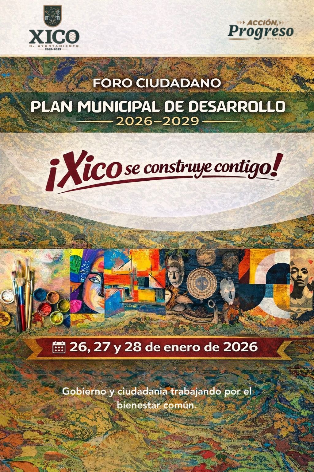 Xico, Ver.— Con el objetivo de construir un Plan Municipal de Desarrollo verdaderamente representativo, incluyente y acorde a las necesidades reales de la población, el Ayuntamiento de Xico anunció la realización de los Foros Ciudadanos rumbo al Plan Municipal de Desarrollo 2026–2029, que se llevarán a cabo los días 26, 26 y 28 de enero de 2026.
