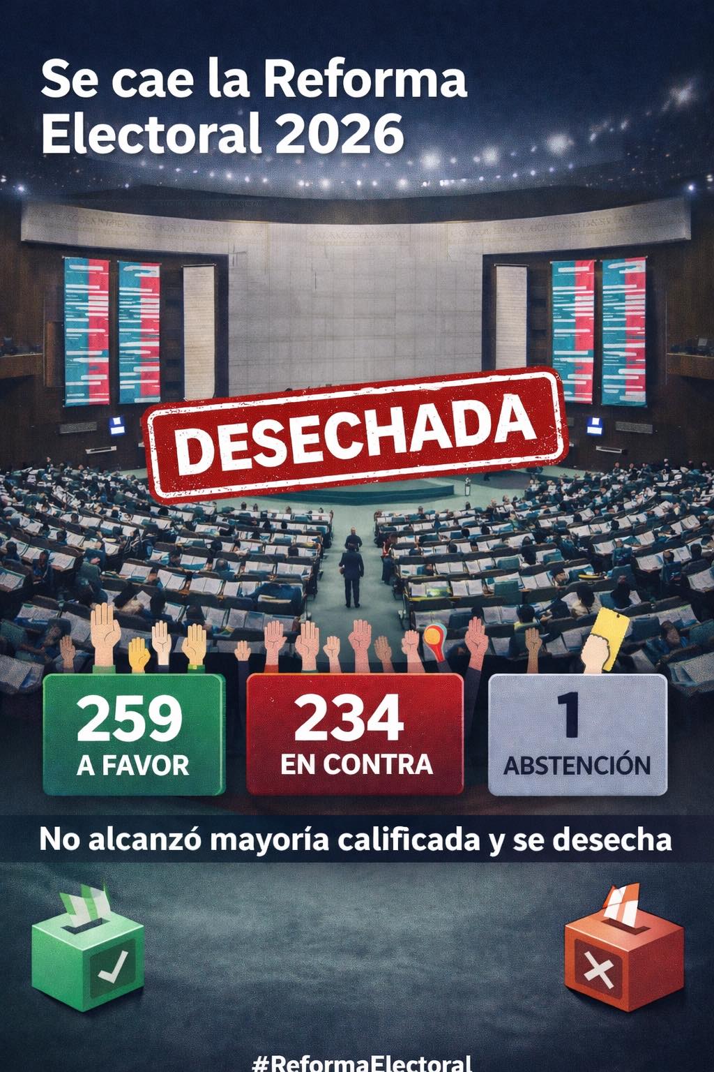 El pasado miércoles 10 de marzo, la administración encabezada por la doctora Claudia Sheinbaum Pardo, quien ostenta los récords de ser la presidenta con mayor aprobación popular y la más votada en la historia política de México, sufrió un revés de consideración. La iniciativa de reforma en materia electoral —denominada por el oficialismo como “Reforma Electoral” y calificada por la oposición como “Ley Maduro”— no logró alcanzar las mayorías necesarias para su aprobación en el Congreso de la Unión. Dicho fracaso legislativo puede interpretarse como una derrota política, evidenciada por la falta de consenso incluso entre sus aliados tradicionales, el Partido Verde Ecologista de México (PVEM) y el Partido del Trabajo (PT). Esta propuesta, en su concepción y espíritu, porta el sello indeleble de su predecesor en el Ejecutivo, el ex presidente Manuel Andrés López Obrador.