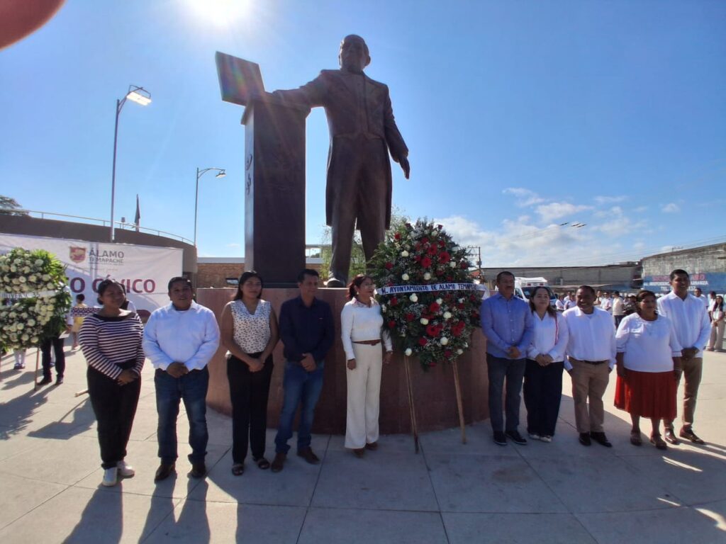 ÁLAMO, VER.- Evocar el pensamiento de Juárez es reflexionar “sobre nuestro presente y sobre la responsabilidad que tenemos como servidores públicos. Desde el gobierno municipal de Álamo Temapache, reconocemos que gobernar implica actuar con rectitud, con honestidad y con profundo compromiso hacia la gente”, subrayó el regidor primero Abimael Cabrera Del Ángel.