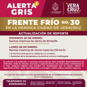 Mantiene PC de Veracruz alerta gris por paso del Frente Frío número 30
