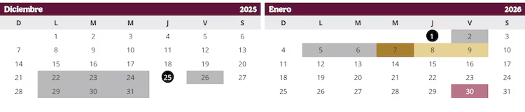 - Lunes 22 de diciembre de 2025: inicio de las vacaciones de invierno