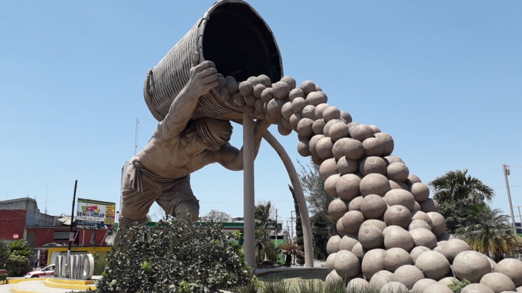 Inclinado hacia adelante, descalzo, con los pantalones arremangados arriba de las rodillas, desnudo del torso y con un colote sobre sus espaldas del que vaciaba decenas de naranjas, la obra del escultor pozarricense Miguel Vargas Martínez tenía 15 metros de altura y estaba asentada sobre una base de 230 metros de longitud, hasta que sucedió la de malas.
