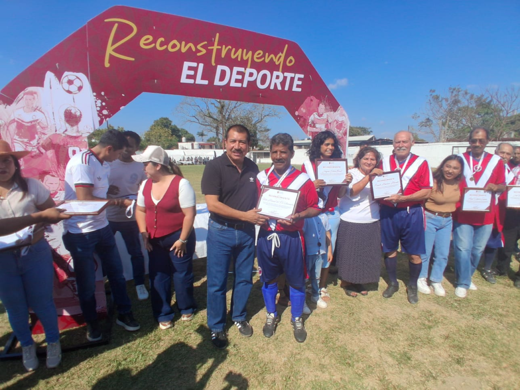 ÁLAMO, VER.- El Gobierno Municipal que preside el maestro José Roberto Arenas Martínez brindó un merecido reconocimiento y homenaje a los seleccionados alamenses que en 1993 se coronaron campeones nacionales de futbol soccer, como reconocimiento a sus méritos deportivos y bajo la premisa de que el deporte, en particular el balompié, también reconstruye.