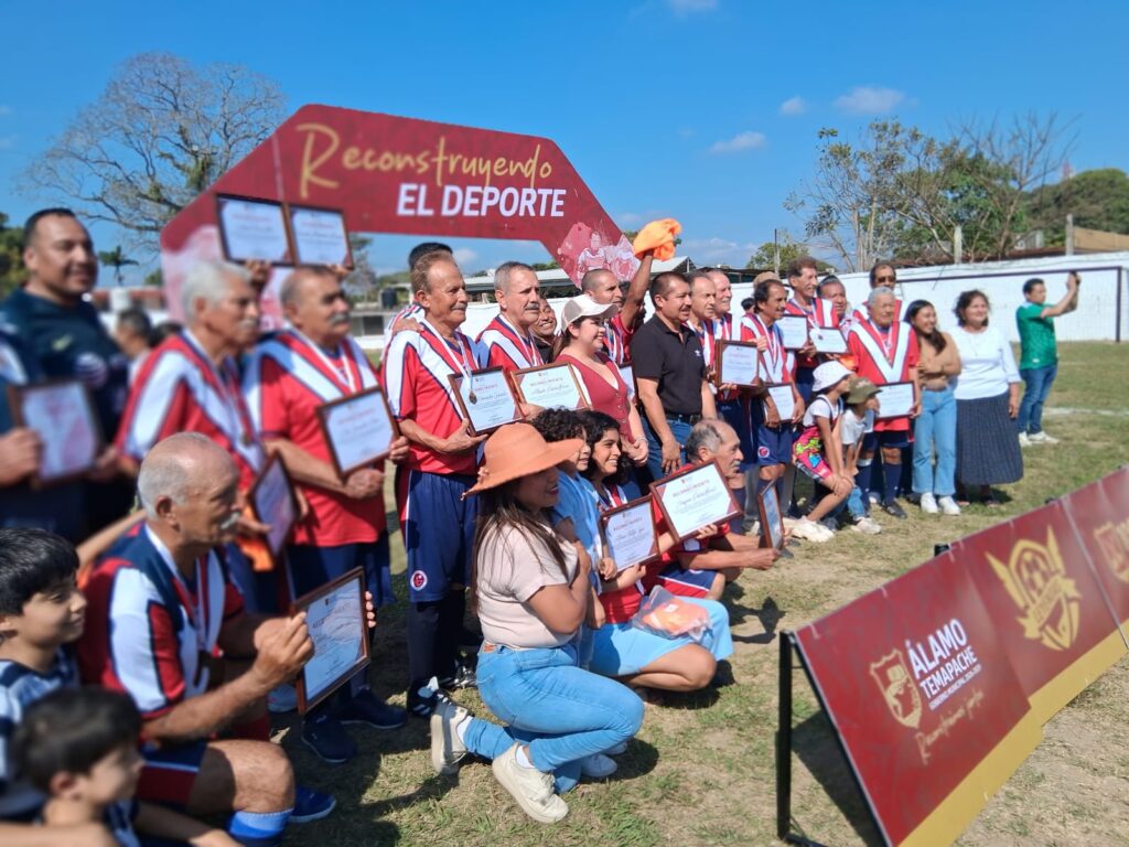 ÁLAMO, VER.- El Gobierno Municipal que preside el maestro José Roberto Arenas Martínez brindó un merecido reconocimiento y homenaje a los seleccionados alamenses que en 1993 se coronaron campeones nacionales de futbol soccer, como reconocimiento a sus méritos deportivos y bajo la premisa de que el deporte, en particular el balompié, también reconstruye.