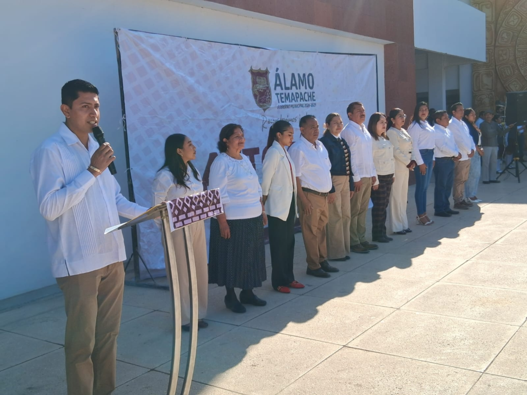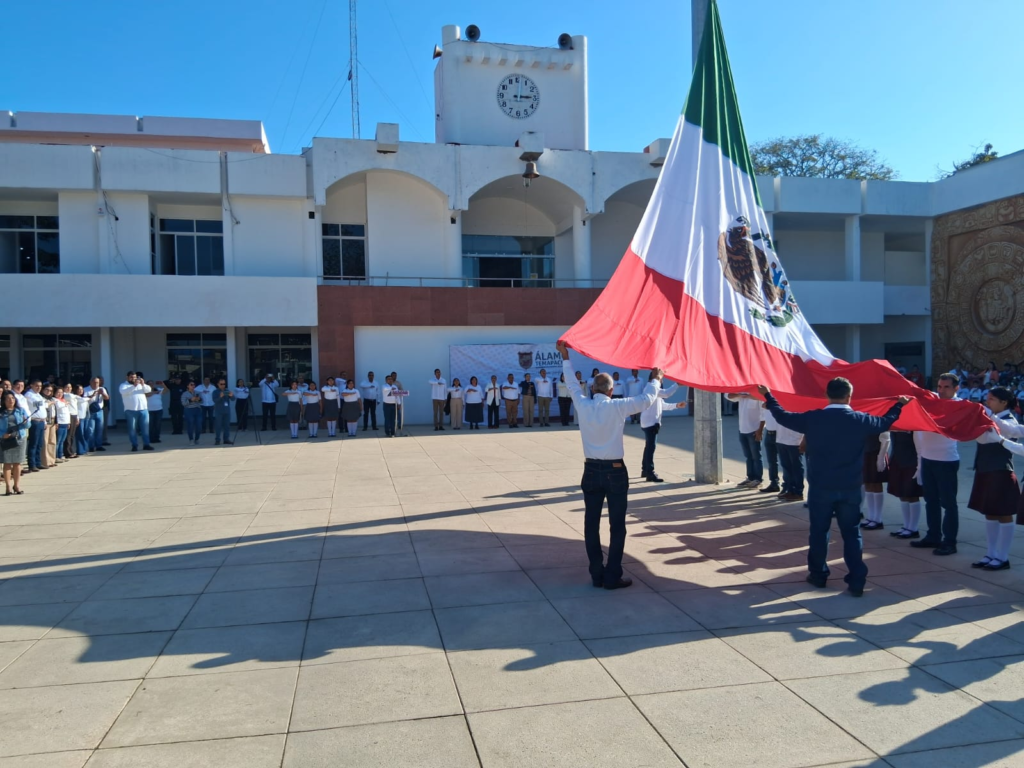 “Que este Día de la Bandera nos recuerde que somos parte de una historia más grande, pero sobre todo de un presente que nos exige actuar con valores, con unidad y con compromiso. Álamo-Temapache está de pie y lo vamos a seguir levantando juntas y juntos, con trabajo, con identidad y con amor por nuestra tierra. Sigamos reconstruyendo no sólo espacios, sino confianza, tejido social y futuro”, recalcó.