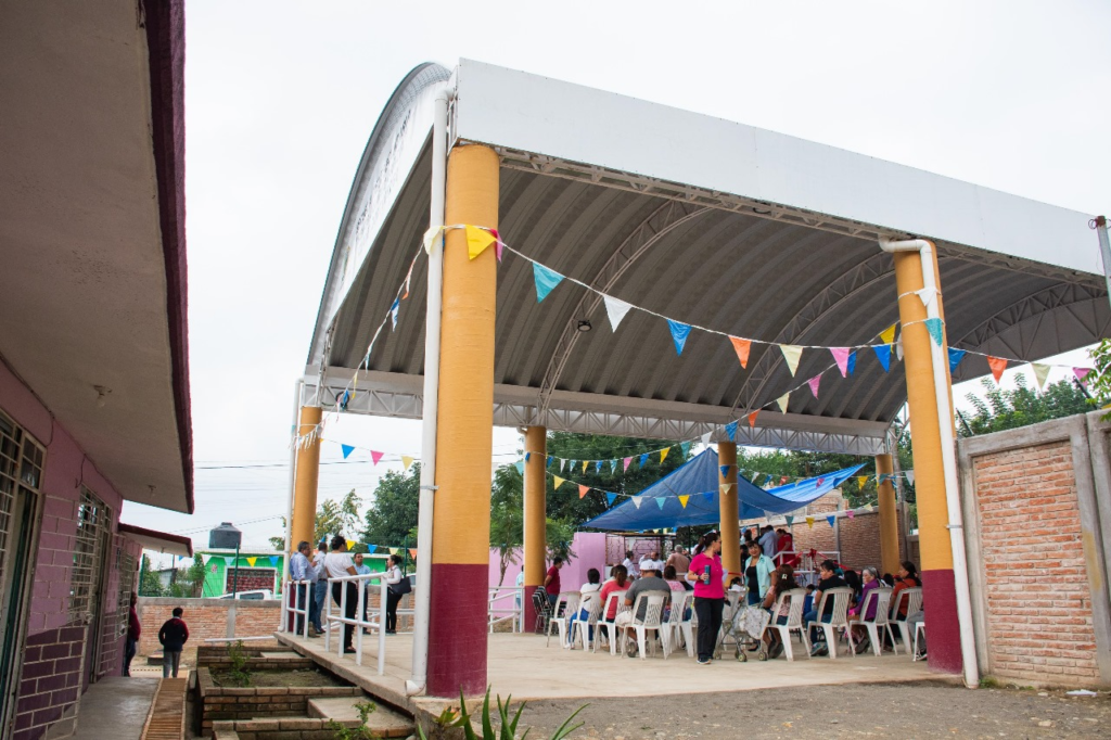 En el Jardín de Niños Juan Escutia, ubicado en la colonia Guadalupe Victoria, se realizó la construcción de un techado en el área de educación física, así como la rehabilitación de la barda perimetral y aulas, brindando mayor seguridad y comodidad a las infancias.