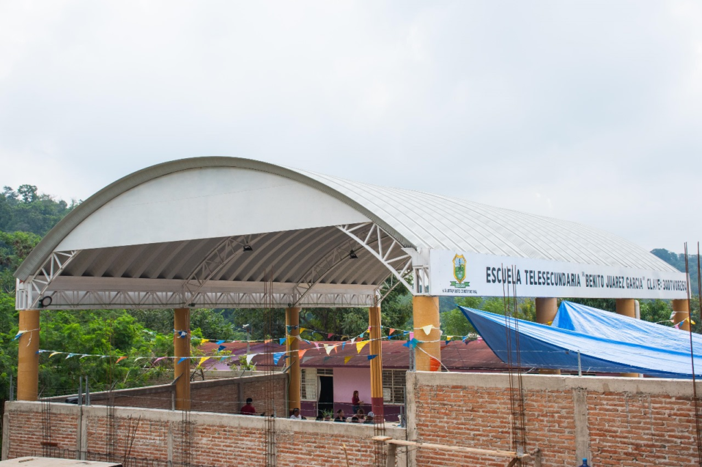 Por otro lado, la Escuela Telesecundaria Benito Juárez, ubicada en la colonia Lomas Verdes, también fue beneficiada con la construcción de un techado en el área de educación física y una barda perimetral, acciones que permitirán a la niñez y juventud realizar sus actividades escolares y deportivas en un ambiente más seguro.