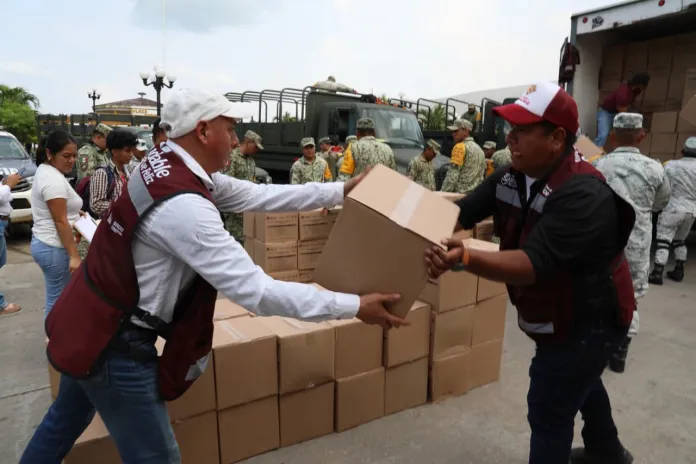 En los municipios más golpeados por las lluvias —San Juan Evangelista, Texistepec, Jesús Carranza, Sayula de Alemán e Hidalgotitlán—, brigadas del DIF comenzaron la entrega de 2 mil 100 canastas alimentarias como parte del Programa de Atención a Población en Emergencia.