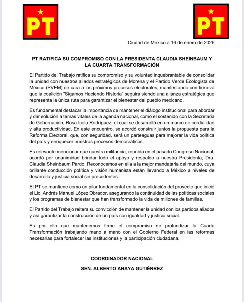 De todo un poco El PT se “arruga” y da marcha atrás… Redacción enero 16, 2026 1 min read 0 0 0 0 0 0 0 1/16/2026 11:48:08 AM 0 1 0 0 0 0 0 0 0 1 0 586 117 Compartir: Sin palabras, mejor ponemos el pronunciamiento completo, íntegro para que no digan que uno distorsiona los hechos. Compartir: Post navigation Previous Abate Ayuntamiento de Veracruz rezago en limpia pública y garantiza recolección diaria en toda la ciudadNext Ocho perritos ya tienen un hogar gracias a la Expo Adopta y la Corte Real del Carnaval de Veracruz 2026 Deja un comentario Cancelar respuestaTu dirección de correo electrónico no será publicada. Los campos obligatorios están marcados con *Comentario * Nombre * Correo electrónico * Web Guardar mi nombre, correo electrónico y sitio web en este navegador para la próxima vez que haga un comentario. Historias similares 2 min read De todo un poco MC ampliará denuncia por derrame de crudo;Álvarez Máynez y Carbonell exigen justicia para Veracruz marzo 25, 2026 Redacción 3 min read De todo un poco Leonel Noya, líder de FASTRAV, se deslinda de liderazgos que no aportan al desarrollo de Veracruz. marzo 25, 2026 Redacción 2 min read De todo un poco Información Municipal Veracruz Se prepara Ayuntamiento de Veracruz para Semana Santa 2026 marzo 24, 2026 Redacción