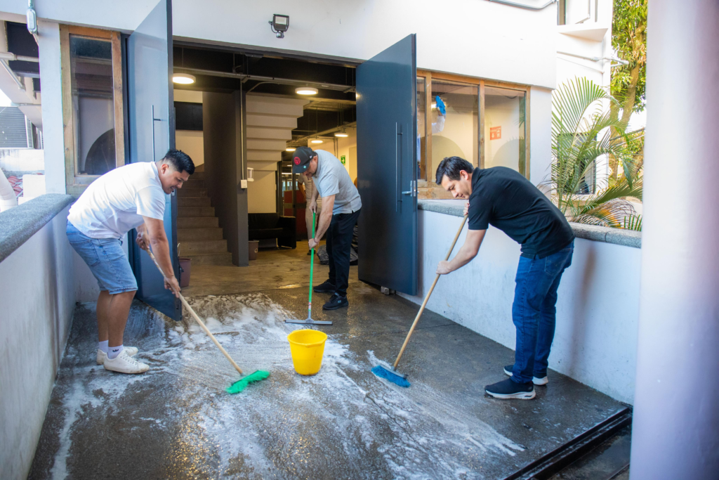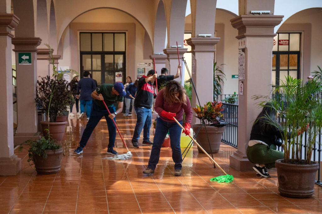 La jornada, organizada por la Dirección de Juventud, que dirige el Lic. Rafael Alarcón Barrientos, contempló diversas acciones de limpieza, ordenamiento y mantenimiento en áreas comunes e instalaciones del inmueble, como parte de una estrategia integral para fortalecer la cultura del cuidado del patrimonio público y mejorar las condiciones de los espacios de trabajo y atención ciudadana.