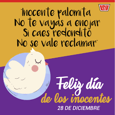 Generalmente, al final de cada broma o “inocentada”, se acostumbra decir: “INOCENTE PALOMITA QUE TE DEJASTE ENGAÑAR”