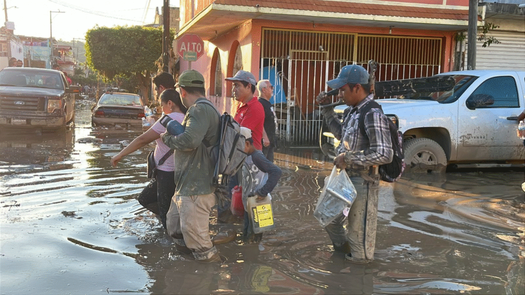 Aquí se busca limpiar el drenaje junto a docenas, cientos de casas hechas pedazos, patrimonios desaparecidos, solidaridad civil presente pero insuficiente, ausencia del gobierno de todos los niveles, hasta el domingo a 48 horas de la tragedia inenarrable. Es el poniente de Poza Rica, a unos 500 metros del río cazones que se desbordó a las 4:00-5:30 de la madrugada del viernes diez de octubre y topó con miles de personas durmiendo o intentando salir de última hora. Literalmente el agua poderosa los aplastó, los hizo suyos.