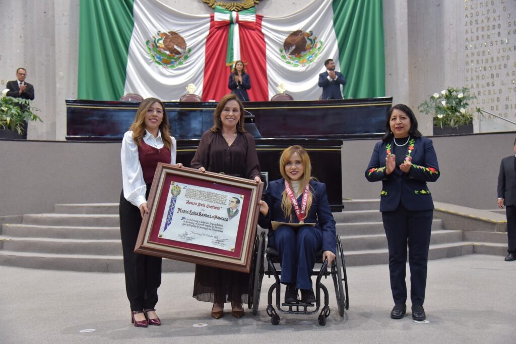• En Sesión Solemne, la atleta paralímpica veracruzana recibe la medalla y el diploma por su ardua labor, liderazgo incluyente y trayectoria ejemplar.