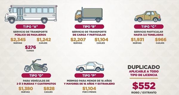 La Dirección General de Transporte del Estado recuerda a la ciudadanía los costos actualizados para la expedición, renovación y duplicado de licencias de conducir en sus distintas modalidades: