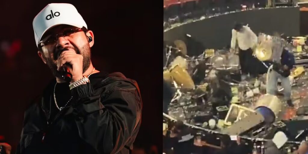 En el video se puede ver como avientas los tambores de la batería, hasta tiraron una laptop que estaba en la parte del sonido.