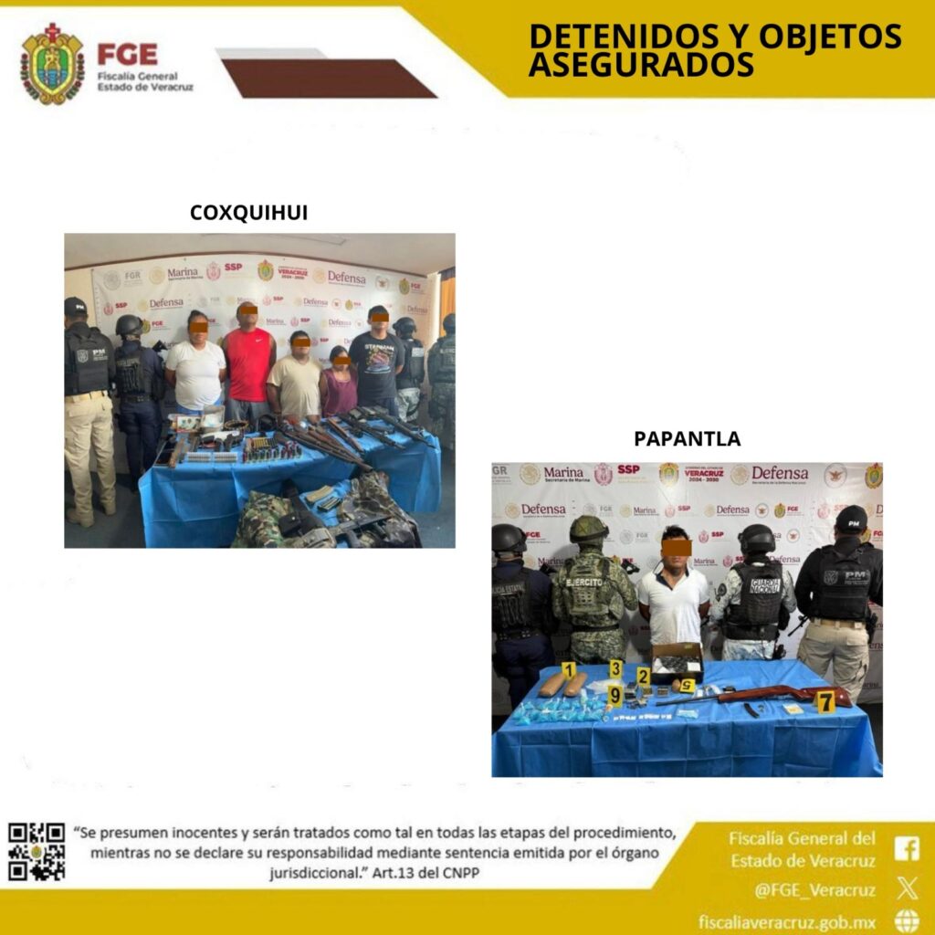 Durante el operativo efectuado en Coxquihui, se detuvo en flagrancia a José María “N” y Felicito “N”, presuntos integrantes de un grupo delictivo, así como a Rosa Guadalupe “N”, Julia “N” y Juan “N”.