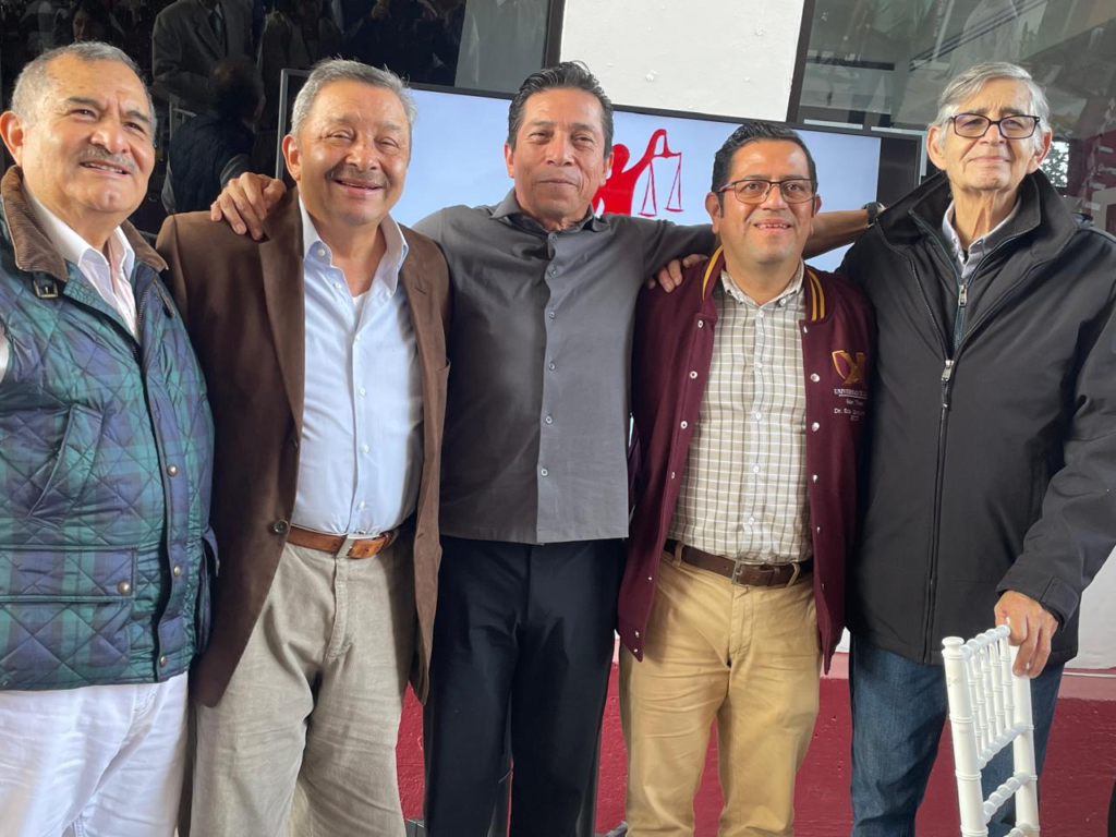 El dirigente estatal de GAMEC Carlos García Herrera y el Rector de la UX, Dr. Erik García Herrera acompañados de los directivos del Grupo Xalapa A.C., Carlos Rodríguez Velasco, Jaime Cisneros González y Luis Bustos García.