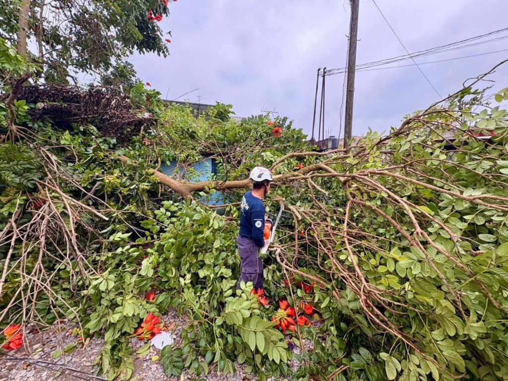 Ante esta situación, personal de Protección Civil y áreas operativas del Ayuntamiento de Poza Rica realizan recorridos y labores de atención para retirar los árboles caídos y mantener las vialidades seguras para la ciudadanía.
