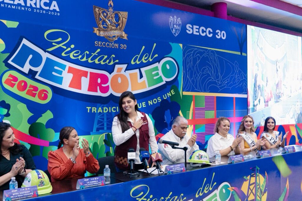 Poza Rica, Ver.- La Presidenta Municipal Adanely Rodríguez encabezó la presentación oficial de las Fiestas del Petróleo 2026, destacando que esta celebración representan identidad y el esfuerzo colectivo que dan origen a Poza Rica, así mismo la renovación de los lazos institucionales con la Sección 30 del Sindicato Petrolero y con Petróleos Mexicanos, pilares en el desarrollo histórico, económico y social del municipio.