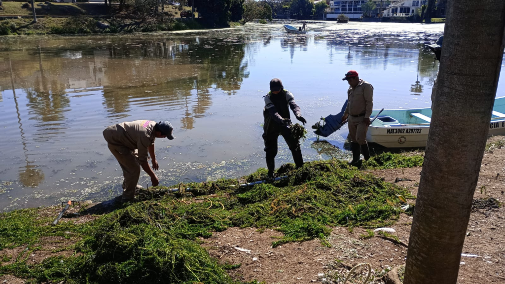 Es de señalar que en estas jornadas de limpieza que se realizan en este cuerpo de agua, se sacan por día dos camiones de volteo de algas.