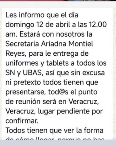 En una carta abierta que será entregada este domingo por los trabajadores de la institución a la titular federal de la Secretaría del Bienestar, Ariadna Montiel Reyes, se le acusa de obligar al personal a asistir a eventos fuera de protocolo laboral y a repetidos encuentros en favor de Morena sin la entrega correspondiente de viáticos.