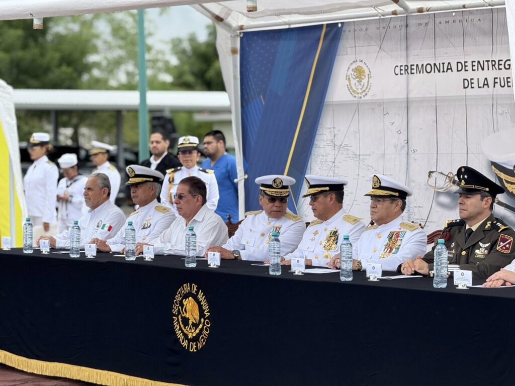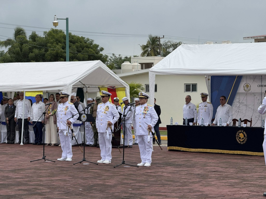 “Con la honrosa representación de nuestra Gobernadora, Rocío Nahle asistí a la ceremonia de ENTREGA – RECEPCIÓN del Mando de Armas de la Fuerza Naval del Golfo en el municipio de Tuxpan, encabezada por el Almirante José Manuel Salinas Pérez, Jefe de Operaciones Navales, representante del Alto Mando de la Armada de México.