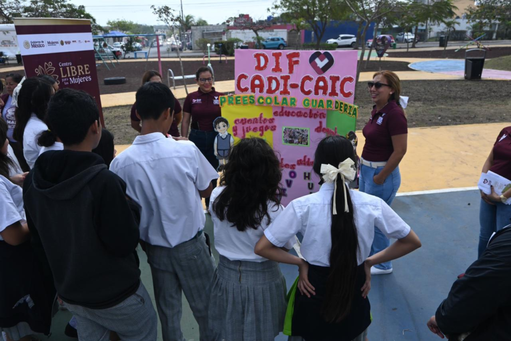 Como parte de estas labores, más de 20 instituciones estatales y federales, así como direcciones municipales de los ámbitos de seguridad, salud y asistencia social participaron en la “Feria por la Construcción de la Paz, Salud Integral y una Vida Libre de Violencia”, en la unidad habitacional Lomas de Río Medio 4.
