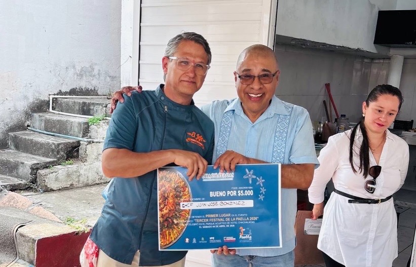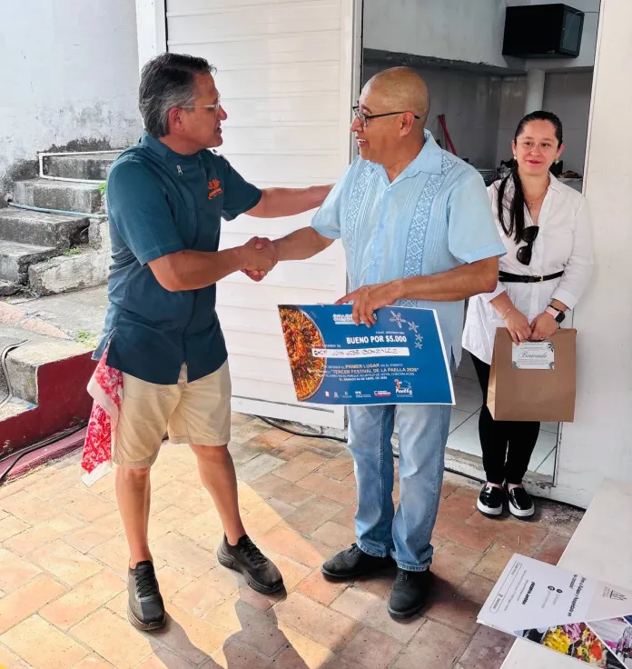 “Entrego este primer lugar a Juan José González por su participación en el Tercer Festival de la Paella 2026 que se celebró en el Parque Acuático del Hotel Chachalacas, muchas felicidades”, dijo el director Luis Octavio Hernández Lara, al entregar el premio al ganador.